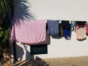 Tijdens het wassen van mn kleren komt Janice naar me toe, ze ziet dat ik geraakt ben door de teleurstelling van het groepje vrouwen waar ik eerder mee heb gelopen. Ze pept me op en zegt dat dit de Camino is en ieder zijn haar eigen gedoe heeft en krijgt. Let it go! Ik hoef me niet verantwoordelijk of schuldig te voelen, het is van hen, niet van mij. Ik ben blij dat Janice erbij was toen ik Katrina uit de put hielp en snapt wat er gebeurd. Ze verzekert me ervan dat ik goed voor haar ben geweest en mijn aandeel in haar proces positief is. Dat zij dat zelf niet zo ervaart een deel is van wat zij heeft te leren. Janice vertelt met een verhaal over een reis die Peter en zei maakten waar een Chinese jongeman een kamer met hen deelde. Daardoor had hij een goedkoper bed en leverden zij privacy in. De jongen had een zak sinaasappels en at daar iedere dag van, zonder te delen. Janice wachtte af of er tenminste een stukje gedeeld werd. Nadat de zak leeg was heeft ze hem gezegd dat ze niet langer de kamer met hem wilde delen omdat hij nog geen partje gedeeld had en ze stuurde hem weg. Mooi inzicht voor mij. De was kan aan de lijn.