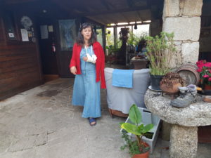Als laatste pelgrim kom ik aan bij Casa Fernanda, wat was ik blij dat ik wist dat er een bed voor mij was. Er zijn veel pelgrims onderweg en op dit stukje van de route staan er niet zoveel herbergen in mijn boekje van John Brierly. Ik loop een soort sprookjesbos in en kom uit in de beschutte, zonnige tuin. De dochter van Fernanda heet me welkom, vraagt of ik alles eet?(or veg or vegan?) Ik? Alles! Zeker nu 🙂