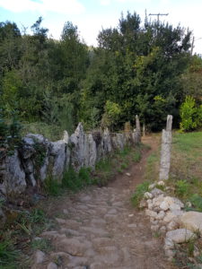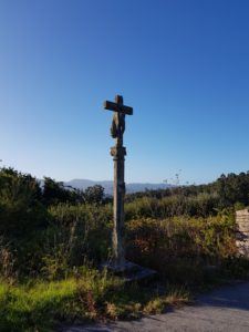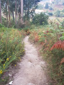 De route is werkelijk geweldig mooi, het weer is lekker om te lopen, ik huppel bijna omhoog. Easy…had ook met rugzak gekunt. Ik voel dat ik veel sterker ben geworden onderweg, die benen kunnen nu heel wat aan! De Portugues Central heeft me hard laten werken, dat is écht een groot verschil met de kustroute die vlak is. Ik voel me zoveel beter dan een paar dagen geleden. Blij ook dat het niet zo heet is vandaag.