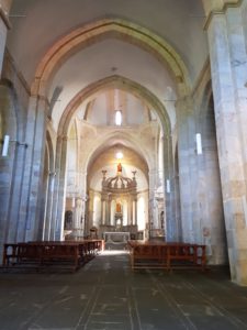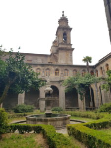 Voor ik het weet ben ik er al, het plein voor het klooster en de kathedraal zit vol, de zondagsmis is net afgelopen. Gezellig! Ik bestel koffie en vraag een stempel in mijn paspoort. Ik neem de tijd om alles te bezichtigen.