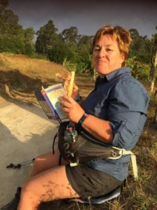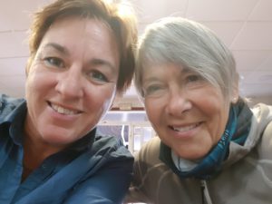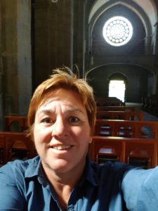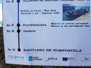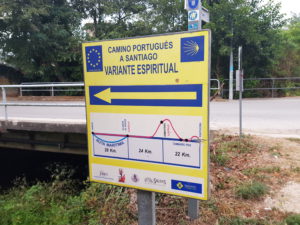 Joan en ik praten bij en we hebben een gezamenlijke passie: zingen! Ik zing voor haar het pelgrimslied dat ik in Vessem leerde en doorgaf bij casa Fernanda en zij zingt de hare, (nada te turbe) voor mij. Joan vertelt me over het bijzondere koor waar zij deel van uitmaakt en welke liederen zij zingen. Alle koorleden hebben allemaal (een relatie met) kanker en Joan vertelt over de manier waarop zij met elkaar omgaan in goede en in moeilijke tijden en hoe zingen helpt! De manier waarop haar dirigente het begeleidt geeft me kippenvel, wat mooi! Ik voel heimwee naar mijn popkoor Unlimited Sound. Ik vertel Joan wat wij (!) zingen. Zo lopen en zingen we samen, er is niemand om ons heen. We komen op het punt waarop de Camino Portugues Central rechts gaat naar Caldas de reis en wij naar links afslaan naar de variante espiritual.