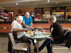 Het ontbijt is heerlijk, uitgeperst sinaasappelen, croissantje, geroosterd broodje, helemaal zondag….dankbaar tot in mn tenen. De Engelsen komen ontbijten en de hoteleigenaar legt hun uit wat voor bijzonders ik ga doen, de berg oplopen vandaag. Met de auto kan ook maar dat is heel erg om zegt. Kaartje komt erbij, geweldig! Wil hier nog graag een keer terugkomen. Schatten de eigenaar en zn vrouw.