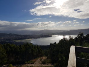 Voor mij een korte route vandaag en de rust die hard nodig heb, ik ben écht heel moe. Ik loop tot Combarro 12 km waar ik een hotelletje heb (er is daar geen alberge) Joan kiest ervoor om vandaag al door te lopen tot op de berg van Armenteira en bij de Nederlandse Bianca en haar gezin te overnachten. Ik doe dat morgen. In het eerstvolgende plaatsje Poio is een prachtig klooster dat ik graag wil bezoeken. Joan moet benen maken want ze weet nu nog niet hoe pittig het zal zijn. We maken een filmpje waarop we de pelgrims liedjes zingen bij het klooster (zodat ik het “nada te turbe” kan instuderen). Terwijl we dat doen komt een groepje Belgische toeristen naar ons toe omdat ze nieuwsgierig zijn naar wat we doen zo zingend. Pelgrims zijn hier nog een bijzondere verschijning haha, leuk! We nemen afscheid van elkaar en komen elkaar misschien morgen bij Bianca en anders in Santiago wel weer tegen.