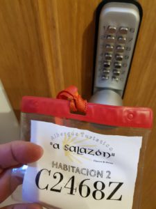 We praten over onze gezinnen en keuzes die we maakten, in een paar uur zijn we van volslagen vreemden overgegaan naar vrouwen die levensverhalen delen. We ontvangen onze Pedronia van een vriendelijke medewerkster van de gemeentelijke alberge en besluiten alvast te proosten op mijn aanstaande 50ste verjaardag. We wisselen gegevens uit en zijn welkom bij elkaar thuis, spreken we uit. Ik vervolg mijn weg richting het klooster dat nog een kilometer of 3-4 buiten Padron ligt. Ik loop (natuurlijk) verkeerd en heb de pijlen te ver gevolgd. Ik ben al in Iria Flavia, daar kom ik morgen zeker langs maar ik had al eerder langs het water moeten lopen. Weer terug dan maar. Om half 6 krijg ik een berichtje van Vanessa dat ik wel voor 18 uur binnen moet zijn, voor de mis. Ik kijk op google maps, nog 24 minuten naar mijn bestemming, dat wordt doorstappen. Voor de zekerheid vraag ik wanneer ik vlakbij ben of ik nog op de goede weg ben. Een vriendelijke dame, die ik ècht niet kan verstaan, loopt met me mee tot de volgende afslag om het me aan te wijzen en met veel gebaren uit te leggen hoe ik er kom. Om 5 voor 6 ben ik binnen met het zweet driedubbel dik op het lijf, op tijd komen is nooit mijn sterkste kant geweest, …ik ben op tijd 🙂 en het blijkt niet voor de mis te zijn, die begint om 20 uur maar voor de rondleiding. Hop hop en dóór, zet daar je tas maar neer Christina, je krijgt straks cel nummer 15 (!) en schoenen uit, slippers aan. Na de rondleiding kun je je nog wel douchen.