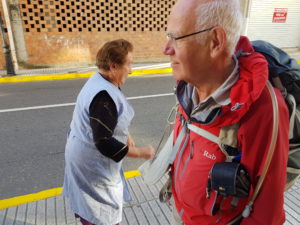 Onderweg kom ik Aik en Ineke tegen en vertel hen wat ik van plan ben, misschien is dit ook leuk voor hen om te doen? Zij hebben namelijk wat tijd te overbruggen want over 2 dagen ontmoeten zij hun partners die samen met hen Santiago inlopen. Hoe mooi is dat? Aik is handig in het goed vragen naar de weg en uitleggen van de bedoeling. De dames op straat doen me denken aan oude oudtantes uit mijn kindertijd. En ja, ik bleek alweer te ver gelopen te zijn.
