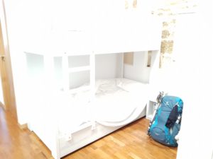 Interessant was vooral het inzicht Kruispunt. Op veel kruispunten staat een kruis, dat was mij ook opgevallen onderweg en dat waren de aanwijzingen (zeg maar de gele pijlen) van vroeger. Jezus kijkt in de richting van Santiago, zo weet je waar je heen moet. Nu zijn in de loop der jaren veel van deze kruisbeelden verplaatst, soms tot in de tuin van particulieren dus ik zou ze niet meer blind volgen …..niet? ik verdwaal zo ook wel haha. En het hilarische was het vertalen, de beste broeder (hier in beeld met het geruite overhemd) spreekt spaans, er was een vrijwilliger die naar het duits vertaalde en er was een pelgrim uit de VS die van spaans naar engels kon. Tot zover, grappig, je leert je talen. Maar wanneer één van hen onjuist vertaalde of niet op het woord kon komen, dan bemoeide de broeder zich er mee, kennelijk begreep hij wèl wanneer de vertaling niet klopte. Verder blijkt het klooster op een kerkhof gebouwd, werden de rijke stinkerds natuurlijk in de kerk begraven en alsof het nog niet genoeg is, ligt er ook een kerkhof rondom het complex. Dus mocht je vannacht bezoek krijgen van een wit gedaante, wees niet bang, ze zijn niet kwaadaardig maar schud ze NIET de hand…..slaap lekker alvast. Ik sneak uit de rondleiding want ik smacht naar een douche, het is inmiddels 7 uur geweest en om 8 uur is er een speciale pelgrimsmis, ik wil daar wel bij zijn natuurlijk, ik ben er nu toch 🙂 en daarna is er een gezamenlijke maaltijd. Om 10 uur moet het stil zijn. Ik douche opnieuw met mijn kleren aan en mag mijn wasje op het rekje binnen hangen, het is inmiddels flink schemerig buiten. Een van de hospitaleros (vrijwilliger van dienst) lijkt op die kale man van de Adams family, al met al toch een beetje scary harry hier maar ik zie er nog steeds de lol wel van in. We slapen in een lange gang, achter elk gordijntje een stapelbed, stellen met zn twee en de rest, voor zover plek, alleen.